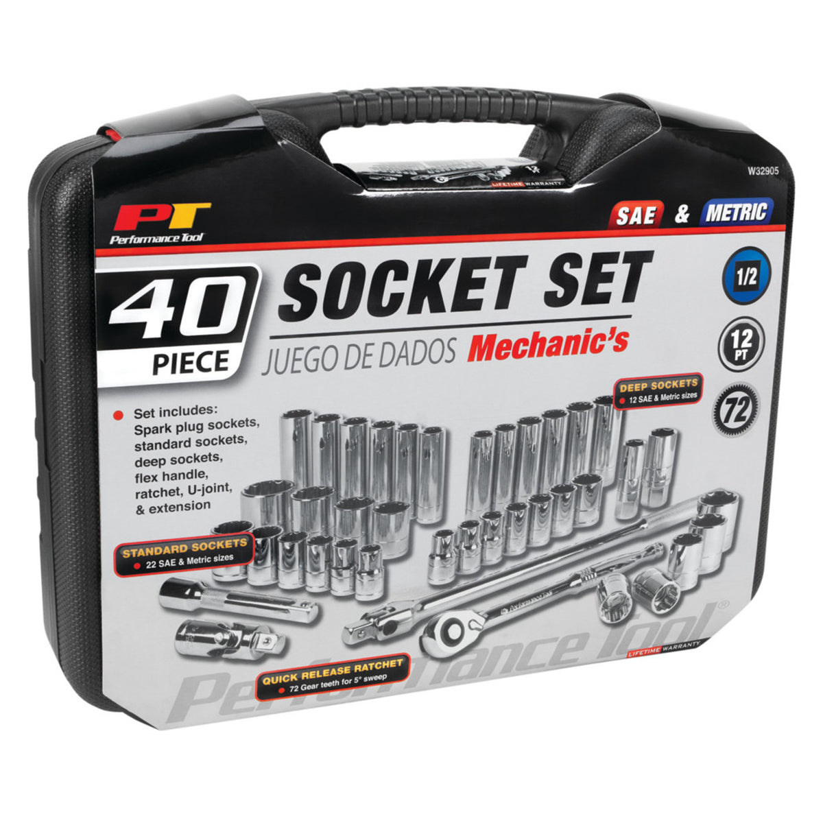 Performance Tool W32905 40 pc. 1/2" Dr. Mechanic's Socket Set